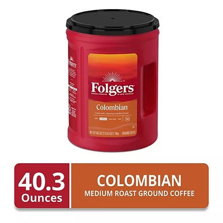 Folgers 100% Medium Roast Ground Colombian Coffee, 40.3 oz.