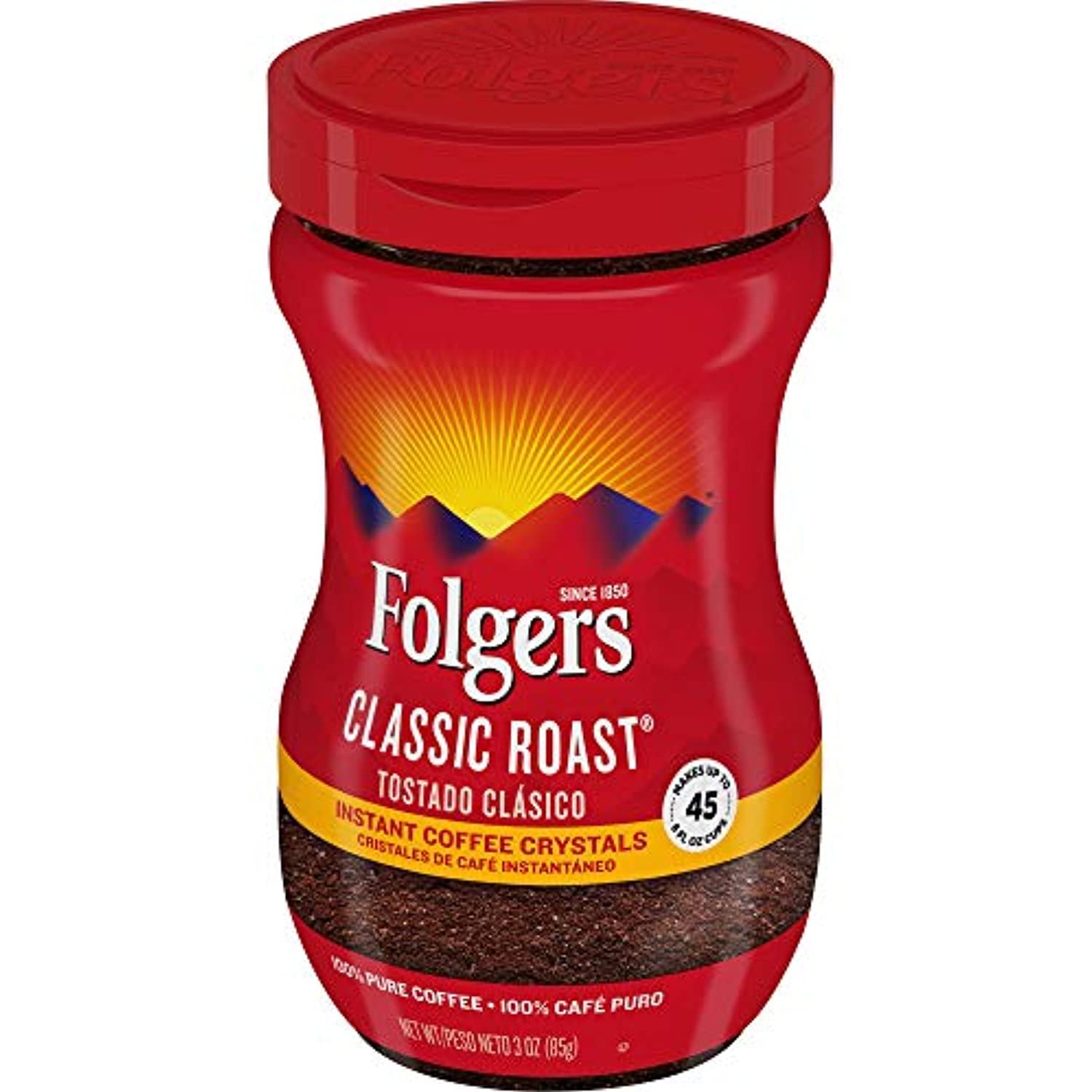 - Contains 1 - 3 Ounce Easy-Open Flip-Top Jar of Folgers Classic Roast Instant Coffee Crystals