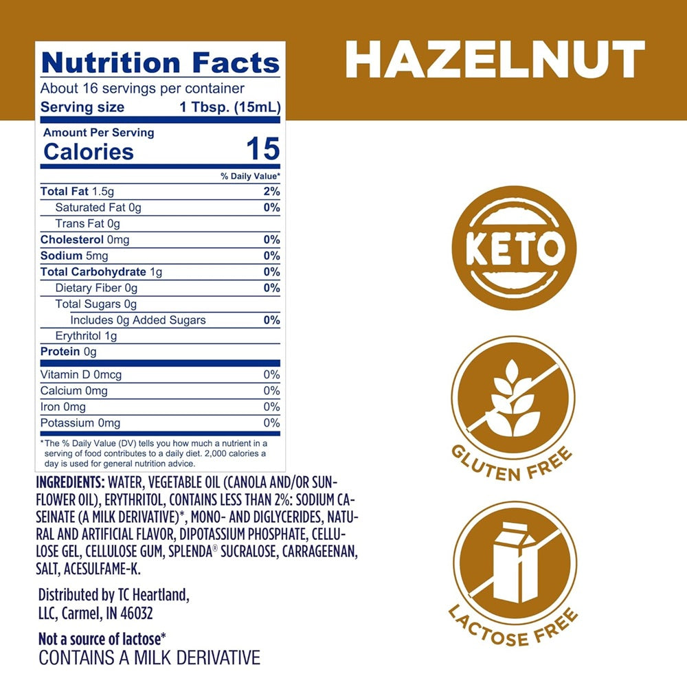 Splenda Sugar Free, Low Calorie Hazelnut Coffee Creamer, 8 fl Ounce Bottle